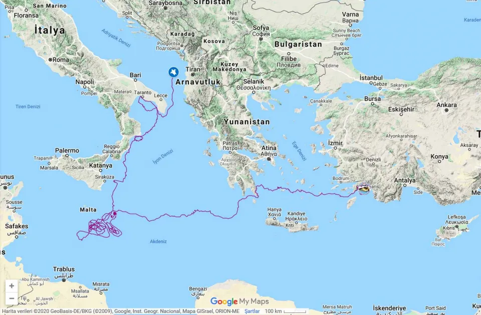 "Deniz kaplumbağalarının korunması için denizdeki tehditlerin nerede olduğunun bilinmesi önem taşıyor. Caretta caretta Tuba'nın göç yollarını takip ediyoruz. Salınmasının ardından iki ayını Marmaris açıklarında geçirdi. Daha sonra bir ay gibi bir sürede Yunanistan sularına ulaştı. İki ay Marmaris açıklarında kalan Tuba, buradan ayrılarak yaklaşık bir ayda Yunanistan'a daha sonra Balkanlar'a geçti. Şu ana kadar 5 bin 500 kilometre yol katetti. Bütün kışı Malta açıklarında geçirdi. Yazın gelmesiyle İtalya'ya hareket eden Tuba, bir buçuk ay Adriyatik'te kaldıktan sonra Arnavutluk'a geçti."