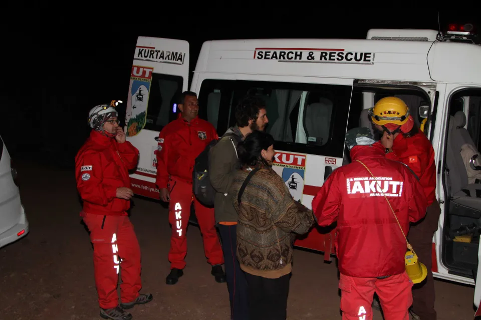 Akut Fethiye Ekip lideri Fatih Işık; Bize jandarmadan 2 kişinin Kayaköy'de kayıp olduğu ihbarı geldi. 8 kişilik ekiple aramaya başladık. Yönlendirme ve arkadaşların telefonları açık olduğu için iletişim kurabiliyordu. Bunun sayesinde arkadaşlara ulaştık diyen Işık, arkadaşları yola indirdik sağlık sorunları yok dedi. (iHA)