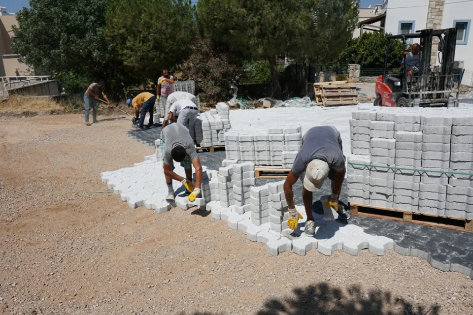 Ekipler, Bodrum genelinde planlı çalışmaları doğrultusunda kilit parke taşı ile yol, kaldırım ve otopark çalışmalarını aralıksız sürdürüyor.