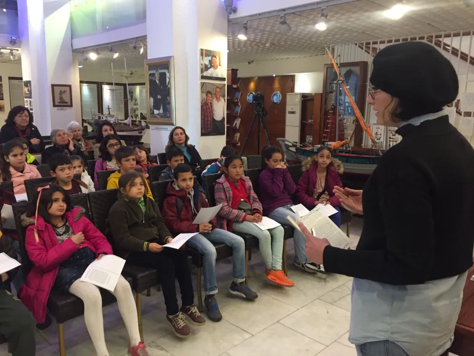 Bodrum Deniz Müzesi’nin 14 Ekim 2016’da başlattığı Müzede Okuma Günleri – Balıkçı’yı Anma etkinlikleri her ay bir okulun katılımıyla devam ediyor. 18 Şubat Cumartesi günü gerçekleştirilen beşinci programa iki farklı okuldan öğrencilerle öğretmenleri katıldı. Bu ayın konuşmacısı, iletişim uzmanı Ekin Anıl oldu. Anıl, çocuklarla Halikarnas Balıkçısı’nın Yol Ver Deniz isimli kitabından bir öyküyü okudu. Anıl, okuma günlerine katılan çocuklardan öykünün sonunu yeniden yazmalarını istedi. Hayal güçlerini kullanarak öykünün sonunu yeniden yorumlayan öğrenciler okuma etkinliğinin ardından müzeyi gezdi.