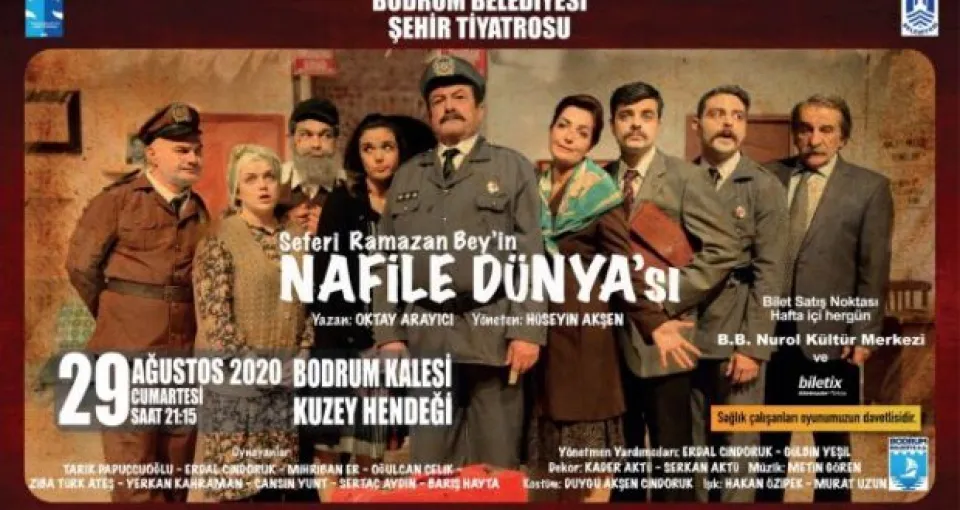 B.B.Ş.T. oyuncuları 29 Ağustos Cumartesi akşamı Bodrum Kalesi Kuzey Hendeği’nde sahneye çıkacak olmanın heyecanını yaşıyor. 2018-2019 sezonunda turneler yapan ve Bodrum’da kültür merkezlerinde kapalı gişe oynayan, Türk Tiyatrosu’nun duayeni Oktay Arayıcı’nın ölümsüz eseri “Seferi Ramazan Bey’in Nafile Dünyası” ile sahneye çıkacak ekibin Genel Sanat Yönetmeni Hüseyin Akşen sürece ilişkin şunları söyledi: “Bir tiyatrocunun sahnelerden uzak kalmasının ne demek olduğunu tahmin ederdik ama yaşamak farklı bir şeymiş. Teknolojiyi kullanarak çözümler üretmeye çalışsanız da, o sahne tozu olmadan, birebir seyirci ile göz göze gelmeden tiyatro olamayacağını bir kez daha yaşadık. Yaşanması gereken bu süreçte elbette en büyük sorumluluk, en zor görev, hayatını tehlikeye atmak pahasına korona virüs ve hastaların iyileşmesi için mücadele eden, sağlık alanındaki tüm personele aitti. Biz de o nedenle bu süreçteki ilk oyunumuzda tüm sağlık çalışanlarımızı konuk etmek istiyoruz. Güzel vakit geçireceklerine dair garanti veriyoruz.”