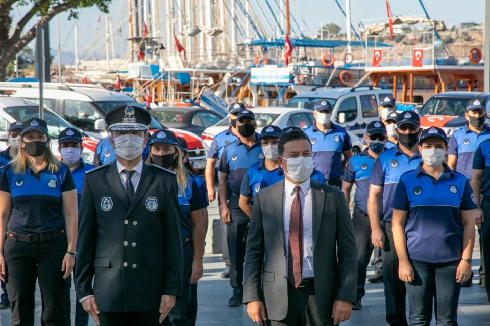 Saygı duruşunda bulunulup İstiklal Marşı'nın okunmasının ardından bir konuşma yapan Bodrum Belediyesi Zabıta Müdürü Deniz Özyıldız, zabıta teşkilatının 194. kuruluş yılını kutlamanın gurur ve kıvancını yaşadıklarını belirterek “Bizler Bodrum Belediyesi zabıtası olarak, belediyemizin vitrinde görünen yüzüyüz. İlçemizde yaşayan tüm vatandaşlarımızı eşit bir şekilde, kayırmadan, ötekileştirmeden, huzuru, sevgiyi, saygıyı hoşgörü çemberini olabildiğince genişletmek görevimizdir. Bodrum Belediyesi demek medeniyet demektir. Bu medeniyeti sürdürmek için de biz çağdaş, laik, demokrat bir şekilde Türkiye Cumhuriyeti’nin kuruluş amaçlarını hiç unutmadan, kararlılığımızı, irademizi gösterme gayreti içinde olmaya devam edeceğiz” dedi.