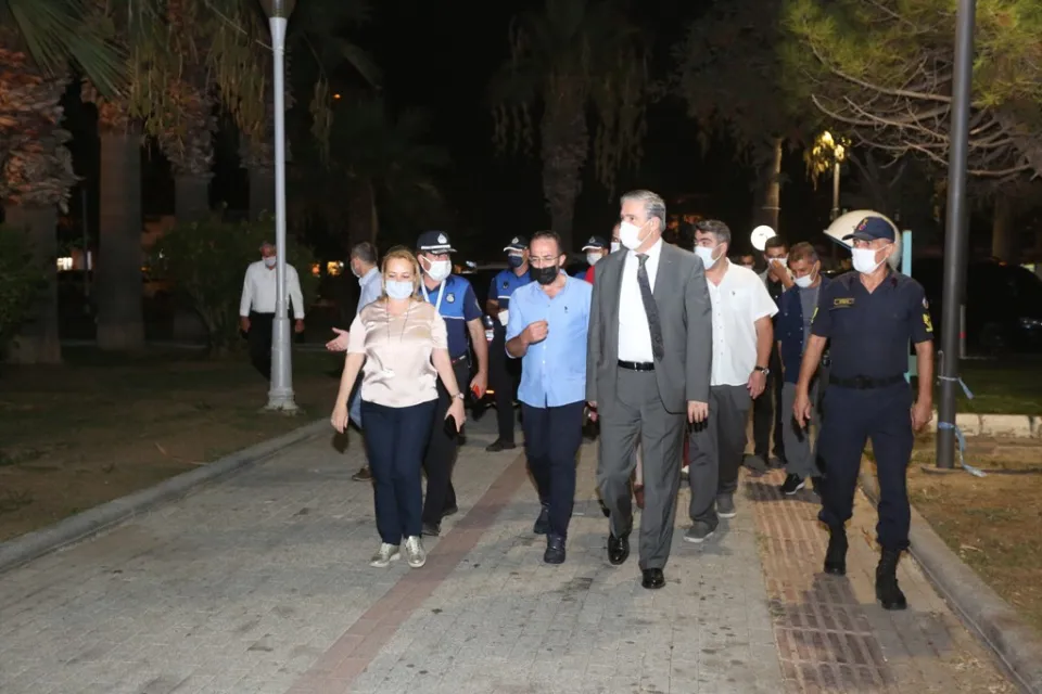 Denetim sırasında işletmeler kontrol edilirken, yetkililerine maske takmaları ve sosyal mesafe kurallarına dikkat etmeleri konusunda uyarılarda bulunuldu. Genel olarak maske ve mesafe kuralına uyulduğu gözlenirken Kaymakam Yılmaz ve beraberindekiler, kurallara uyanlara da teşekkür etti. Zabıta ekipleri bir yandan da sokakta maskesiz dolaşan tatilcileri uyararak maske dağıttı.