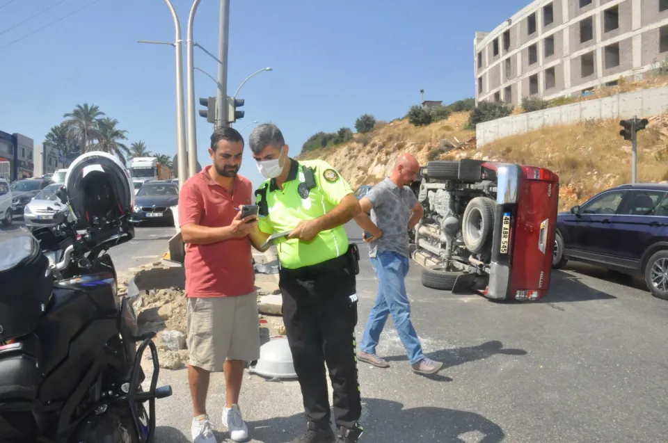 Sercan P. yönetimindeki 48 ABR 545 plakalı kamyonet, Konacık Mahallesi Atatürk Bulvarı'nda refüjdeki aydınlatma direğine çarparak yola devrildi.