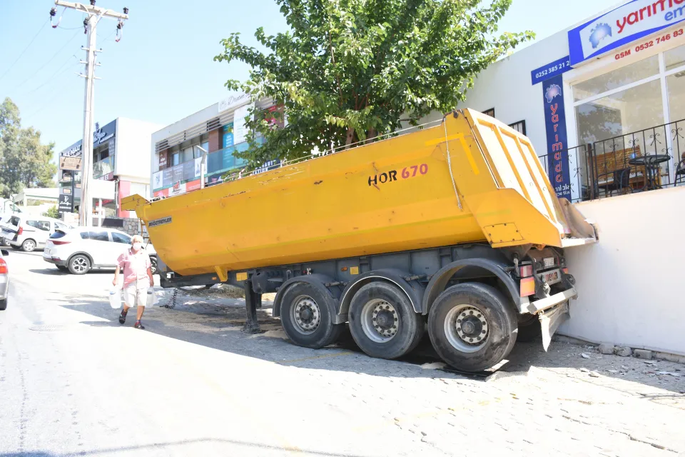 Bodrum ilçesinde, yokuş çıkan tırın yerinden kurtulan dorsesinin çarptığı otomobilin sürücüsü yaralandı.