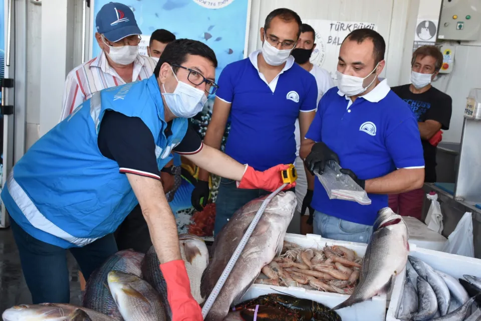 Özellikle boy yasağı olduğu belirtilen barbun, palamut, lahoz ve sinaritin boy ölçümü yapıldı. İthal olarak getirilen deniz ürünlerinin de gümrük belgeleri kontrol edildi.