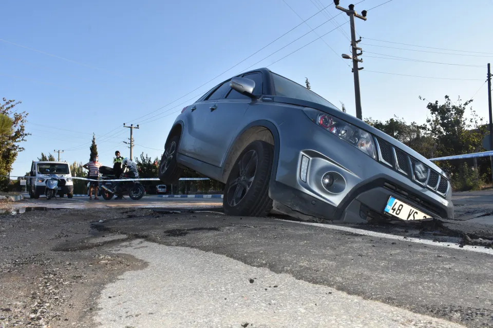 Bodrum ilçesinde seyir halindeki cip, patlayan içme suyu hattında oluşan çukura düştü.