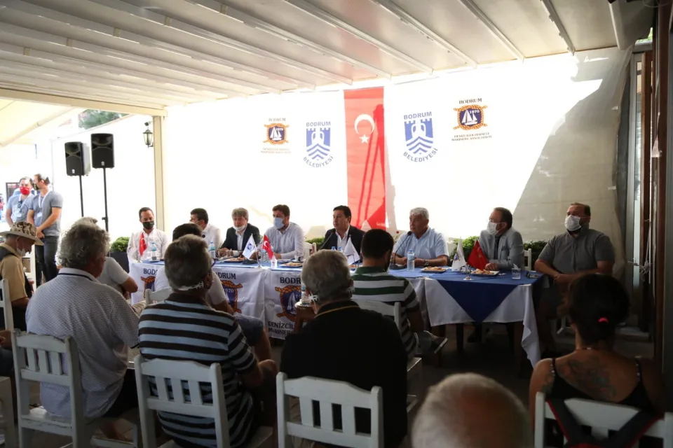 Bodrum Denizciler Derneği'nde düzenlenen toplantıya İMEAK Deniz Ticaret Odası Bodrum Şubesi Başkanı Orhan Dinç, Bodrum Denizciler Derneği Başkanı Erol Erdoğan, Bodrum Esnaf ve Sanatkarlar Odası Başkanı Erdoğan Başeymez, CHP Bodrum İlçe Başkanı Halil Karahan, belediye başkan yardımcıları Emel Çakaloğlu ve Hüseyin Tutkun ile Bodrum Denizciler Derneği üyeleri katıldı.