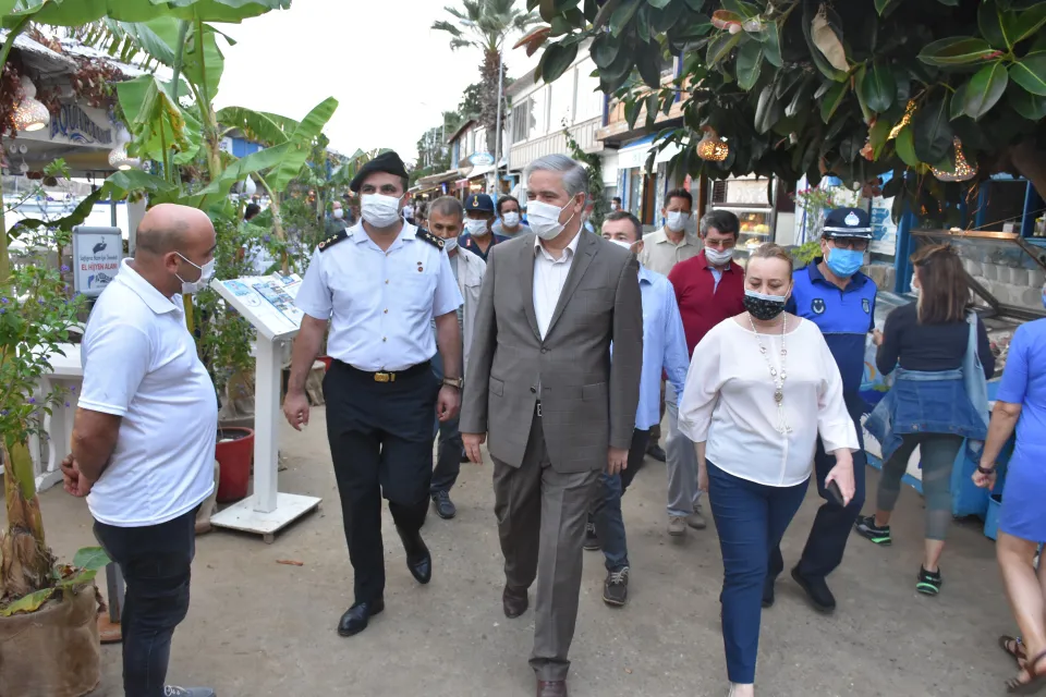 Kaymakam Bekir Yılmaz ve Belediye Başkan Yardımcısı Ummahan Yurt'un da yer aldığı denetimlerde, Gümüşlük Mahallesi sahilindeki kafe ve restoranların işletmecileri ile vatandaşlar, maske ve hijyen konusunda uyarıldı.