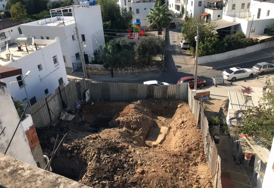 Bodrum ilçesinde, inşaat kazısı öncesi yapılan sondaj çalışmalarında, tarihi eser olduğu değerlendirilen duvarlara rastlandı.