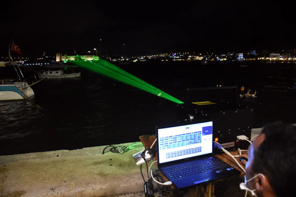 Daha sonra meydana kurulan platformdan Bodrum Kalesi'nin duvarına lazerle "29 Ekim Cumhuriyet Bayramımız Kutlu Olsun" yazısı yansıtıldı. Kale duvarında zaman zaman Atatürk'ün silueti ve imzası da gösterildi.