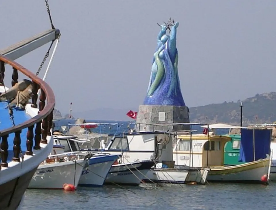 2000 yılında Turgutreis’e Türk - Yunan dostluğunun pekişmesine katkı amacıyla, Ege Denizi'nin dostluk denizi olmasını simgeleyen ‘‘Ege’’ anıtı dikilmişti. Heykelin mozaikleri o kadar canlı ve güzeldi ki, heykelin çevresine gelenler hatıra amacıyla bu mozaikleri söküyorlardı. Anıt 2 sene evvel tamir amacıyla yerinden kaldırılıp heykeltraş Yavuz Tanyelinin atölyesine götürüldü. 6 ay gibi kısa sürede tamir edilen heykel “konulacak meydan aranıyor“ diye bir bahaneyle bir buçuk senedir atölyede bekletiliyor.