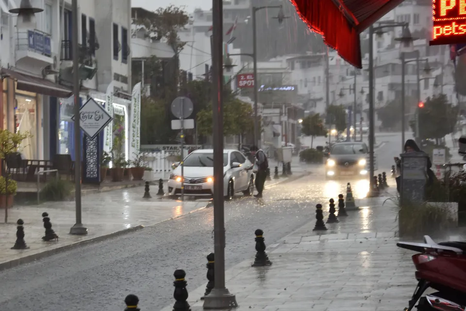Bodrum ilçesinde sağanak etkili oldu.