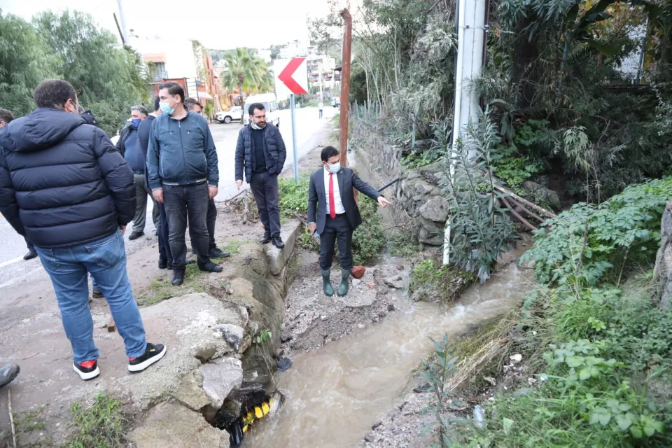 Yalıkavak'ın ardından Gündoğan Mahallesi'ne geçen Başkan Aras, burada da su taşkını yaşanan, özellikle bahçelerin sular altında kaldığı bölgelerde incelemelerde bulundu. Su akışının geçtiği dere yataklarından, suyun geldiği yamaçlara kadar giden Başkan Aras, gerekli çalışmaların bir an önce projelendirilerek en kısa sürede başlatılması talimatını verdi.