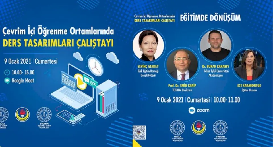 TED Bodrum Koleji tarafından, Muğla İl Milli Eğitim Müdürlüğü destekleri ve Bodrum İlçe Milli Eğitim Müdürlüğü katkıları ile 9 Ocak 2021 Cumartesi günü "Çevrim İçi Öğrenme Ortamlarında Ders Tasarımları Çalıştayı" gerçekleştirilecek.