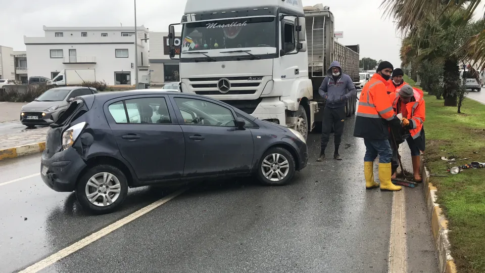 Kontrolden çıkan otomobil, tırın önünde bir süre sürüklendikten sonra refüjdeki ağaca çarparak durdu. Kazada yaralanan sürücü Candan T, ambulansla Bodrum Devlet Hastanesi'ne kaldırıldı.