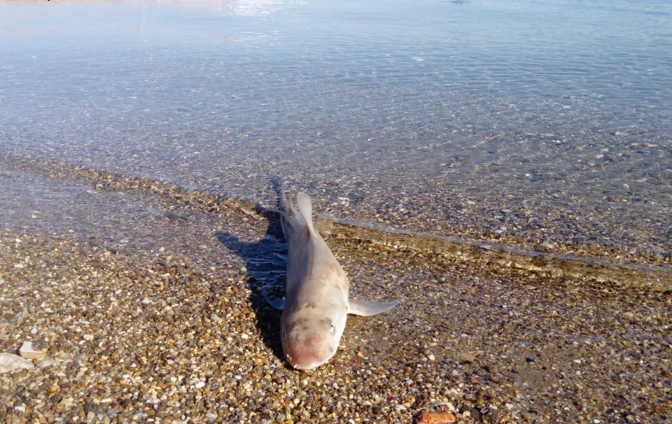 Bodrum ilçesinde, sahilde ölü köpek balığı bulundu.