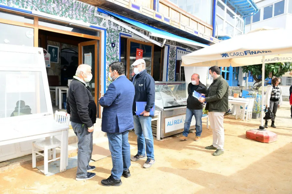 08 Mart 2021 Pazartesi günü ziyaretlerine Gümüşlük mahallesinde faaliyet gösteren yeme-içe sektörüyle devam eden Bodrum Ticaret odası denetim ekibi, işletmelere rehberlik ederek, maske-mesafe-temizlik kuralları ile işletmelerin uyacağı konular hakkında bilgilendirme yaptı.