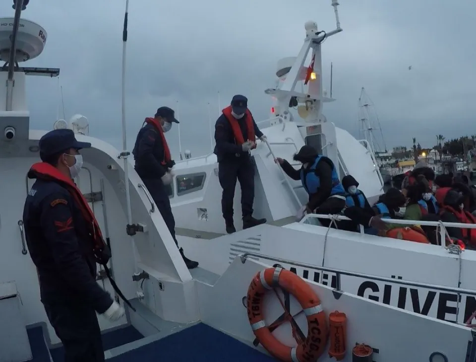 Bodrum ilçesinde, su alan lastik bottaki 34 düzensiz göçmen kurtarıldı.