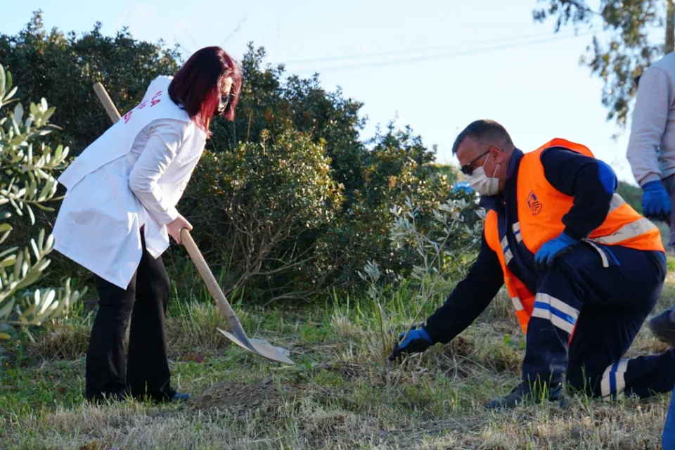 Muğla Tabip Odası tarafından Bodrum Belediyesi'nin destekleriyle zeytin fidanları, yeni tip koronavirüs (Kovid-19) sürecinde hayatını kaybeden sağlık çalışanları için dikildi.
