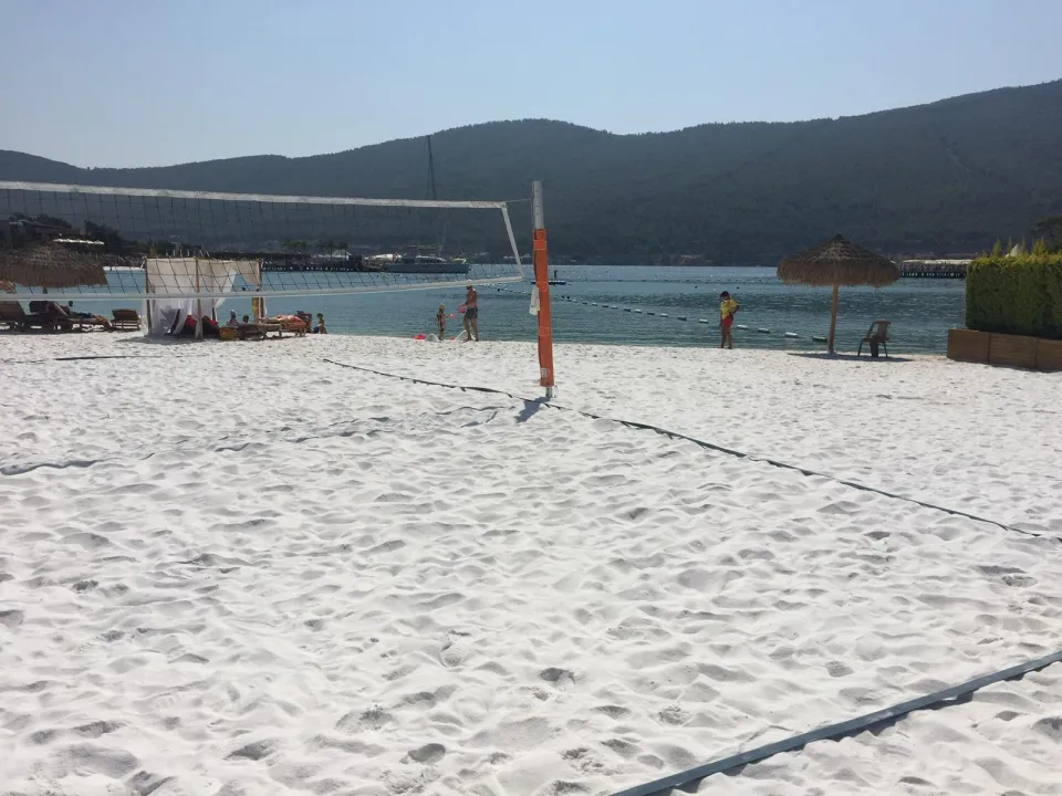 Bodrum ilçesinde bir turistik tesisin sahiline "beyaz kum" görünümlü mermer tozu döküldüğü ileri sürüldü.