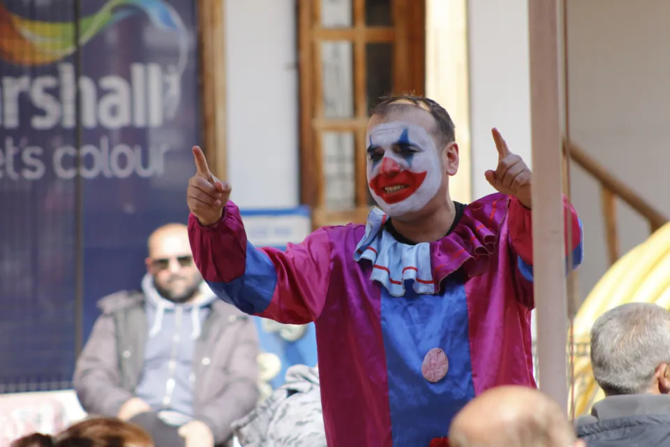 Muğla Tiyatro ve Sinema Sanatçıları Derneği Başkanı Mehmet Topbaş, palyaço kostümü giyerek gerçekleştirdiği tek kişilik performansla kadına şiddete dikkati çekmeye çalıştı.