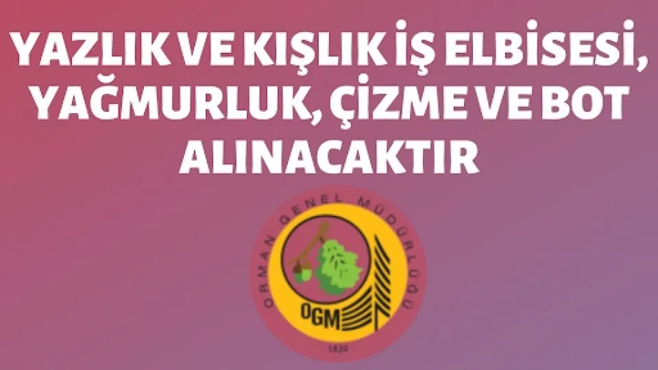 Fethiye Orman İşletme Müdürlüğü işçi personeli için yazlık ve kışlık iş elbisesi, yağmurluk, çizme ve bot alımı işi mal alımı 4734 sayılı Kamu İhale Kanununun 19 uncu maddesine göre açık ihale usulü ile ihale edilecek olup, teklifler sadece elektronik ortamda EKAP üzerinden alınacak.