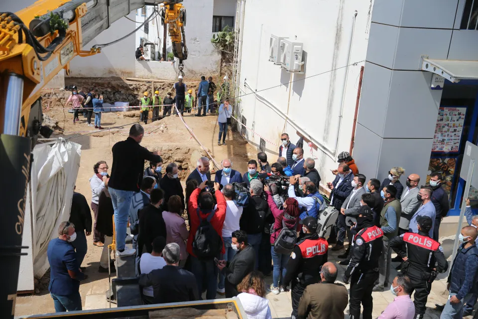Ersoy, Yokuşbaşı Mahallesi Cevat Şakir Caddesi'nde bir inşaatın temel kazısında ortaya çıkan ve Bodrum Kalesi Sualtı Arkeoloji Müze Müdürlüğünce kazı çalışması başlatılan lahit mezar alanında inceleme yaptı.