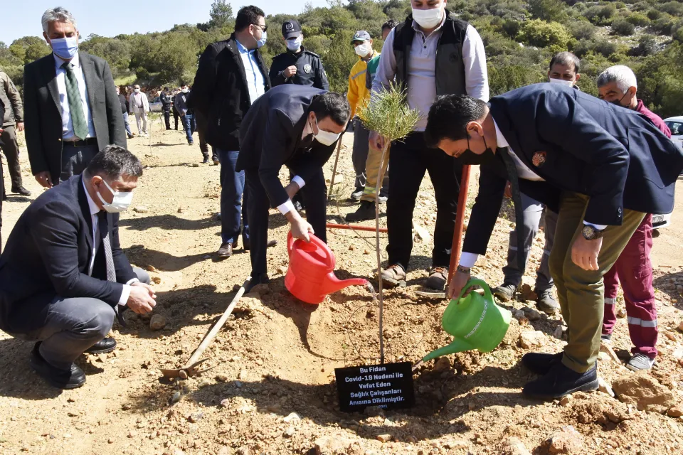 Bodrum ilçesinde, yeni tip koronavirüs (Kovid-19) salgınıyla mücadelede hayatını kaybeden sağlık çalışanları anısına fidan dikildi.