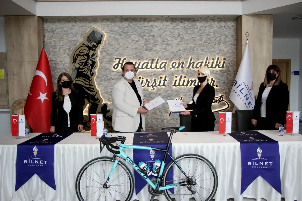 Okulun Bodrum Kampüsünde düzenlenen ana sponsorluk imza töreninde konuşan Bilnet Okulları Genel Müdürü Zehra Sağ, yıllardır amatör ve profesyonel bisiklet yarışçılarına ev sahipliği yapan ve destekleyen Granfondo organizasyonuyla çalışmanın mutluluğunu yaşadıklarını söyledi.