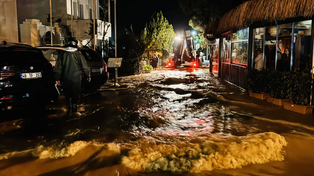 Bodrum ilçesinde etkili olan şiddetli yağış sele dönüştü. Cadde ve sokaklar göle dönerken, birçok mahallede ulaşım aksadı, ev ve iş yerlerini su bastı.