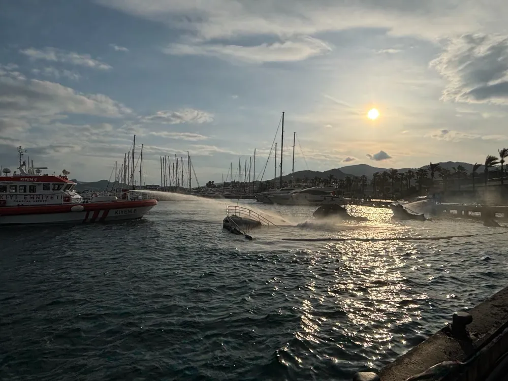 Yalıkavak marinada demirli 8 motoryatı etkileyen yangın kontrol altına alındı